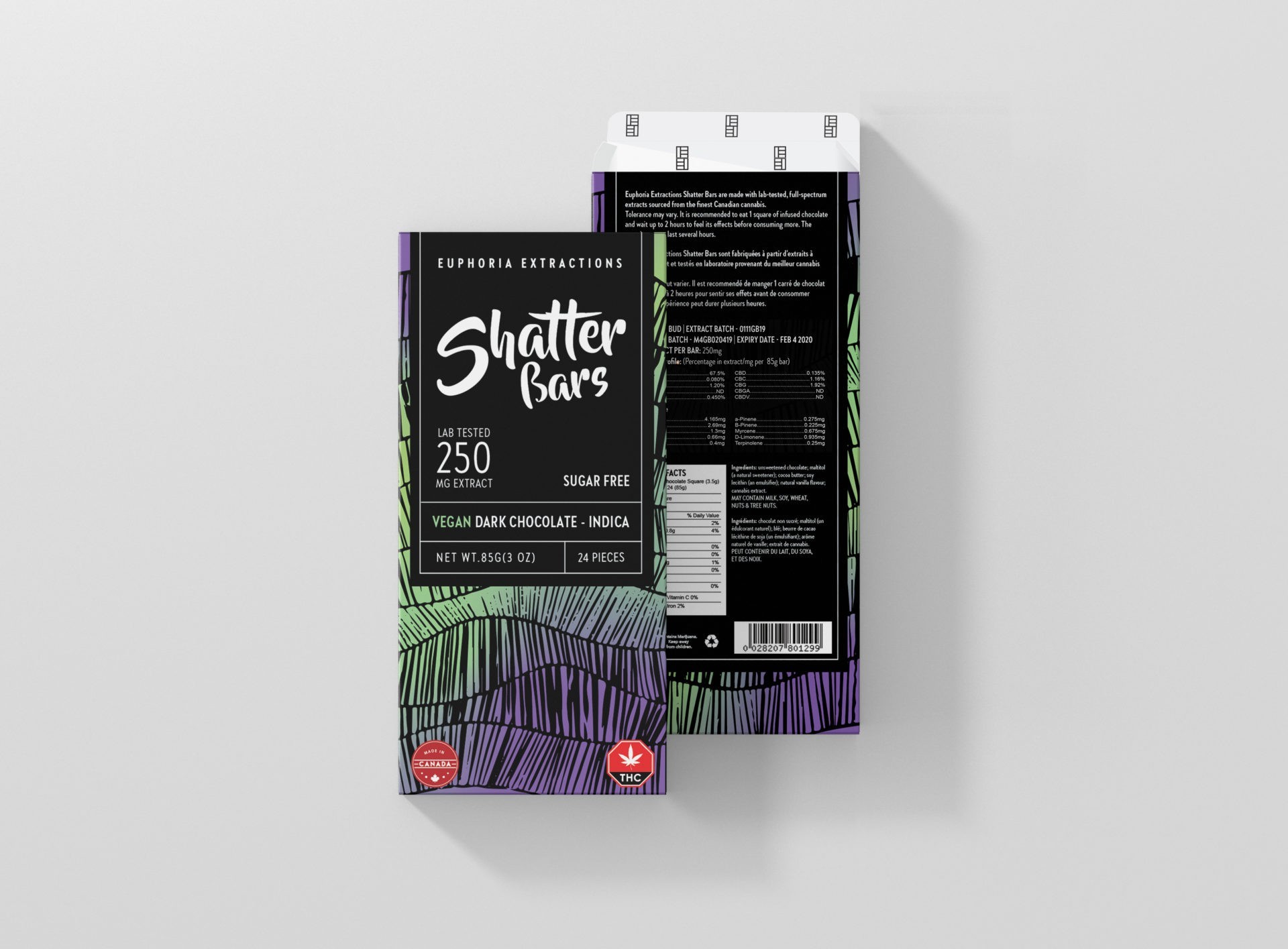 Euphoria Extractions Dark Chocolate Vegan Shatterbars are the perfect solution for your edible needs. With 24 squares, these bars are easy to manage of the highest quality Belgian chocolate. and contain a potent 250mg of Lab Tested Full Spectrum Extract sourced from the finest cannabis available. Euphoria Shatterbars are guaranteed to provide total satisfaction. Dark Chocolate Vegan Shatterbars are Sugar free and Vegan