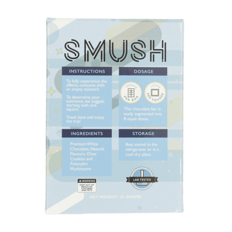 SMUSH chocolate bars come in lab precise dose segments to help you reach your desired trip experience level. One segment will be adequate for a micro-dose and five for full blown trip experience into SMUSH multiverse.