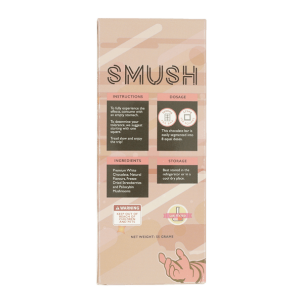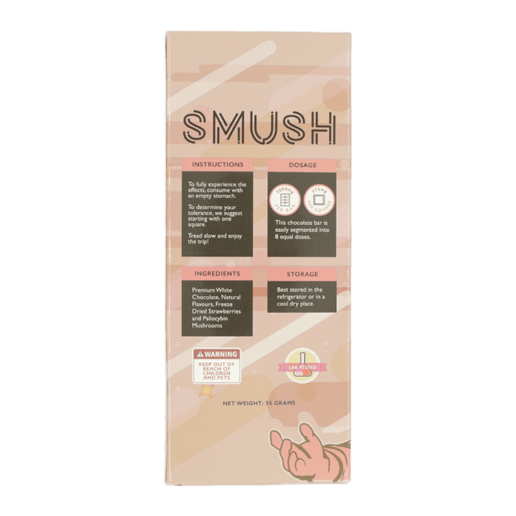 SMUSH chocolate bars come in lab precise dose segments to help you reach your desired trip experience level. One segment will be adequate for a micro-dose and five for full blown trip experience into SMUSH multiverse.